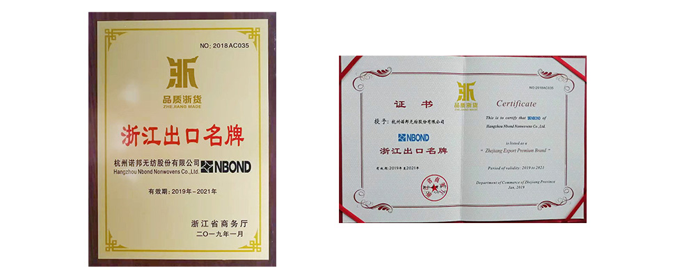 2015年12月,诺邦股份第一次拿到由浙江省商务厅颁发的“浙江出口名牌”。2019年9月,诺邦股份通过复核,再次拿到“浙江出口名牌”牌匾及证书!根据浙江省商务厅颁发的“浙江出口名牌”申报标准,企业上年度的出口额不能低于1000万美元,这比第一次申请的不能低于900万美元有了更高的标准,同时审核过程更为复杂、严格。而诺邦在这三年间,不断扩充自身综合实力、提升品牌知名度、努力开拓国外市场、积极打造国际知名品牌,再次斩获荣誉,就是最好的验证。