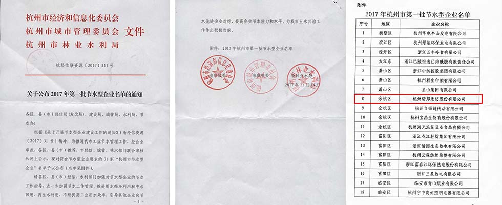 12月4日,诺邦股份拿到“关于公布2017年第一批节水型企业名单的通知”的红头文件,这意味着我司成功入选杭州市第一批节水型企业。此次评选根据2017年3月“关于开展节水型企业建设工作的通知”的文件精神,经企业申报,各区、县(市)推荐,市经信、城管、林水部门联合审核和网上公示,最终确定了符合节水型企业要求的首批“杭州市节水型企业”名单,杭州市各区县共31家企业入选,杭州诺邦股份有限公司榜上有名!