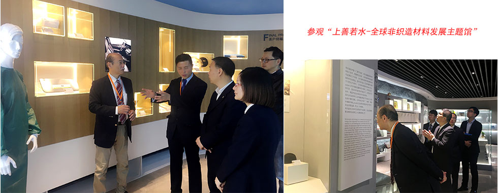 最后,一行人参观了“上善若水-全球非织造材料发展主题馆”,对行业发展历程和诺邦非织造产品进行更进一步的了解探讨;针对日本医疗行业对于手术衣的功能需求和未来发展方向客人与我方做了交流。交流中得知,用最短时间穿着手术衣,医护人员做好防护措施,以此争抢出每一秒用以拯救生命,是日本医疗界对手术衣产品的新要求。