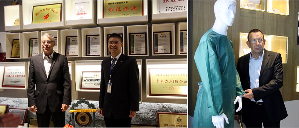 在双方交流会议上,张总代表诺邦对以色列promed专家组一行的来访参观表示热烈欢迎,并对诺邦股份与老板集团发展历史、规模、产品应用领域等进行了逐一介绍。代表团对诺邦在非织造材料医用领域的研究探索方面内容进行了提问。张总非常感谢专家组的提问,并针对这些问题作了详尽回答。在医用材料的开发上,诺邦表示将在现有技术和研发能力的基础上,以开发合作的态度与以色列相关科技拥有者进行洽谈。