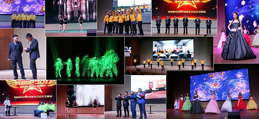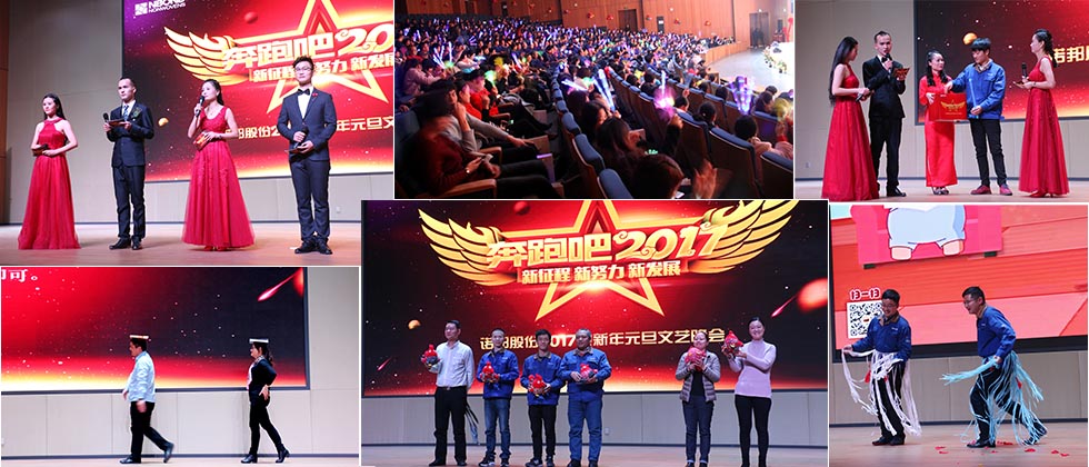 2016年12月31日晚18点,一场以“新征程、新努力、新发展”为主题的诺邦股份2017迎新年元旦文艺晚会在南厂区多功能厅盛大举行,原总经理张杰、总经理龚金瑞、任建永等领导班子成员与公司500余名干部职工欢聚一堂,共享此次跨年盛会!