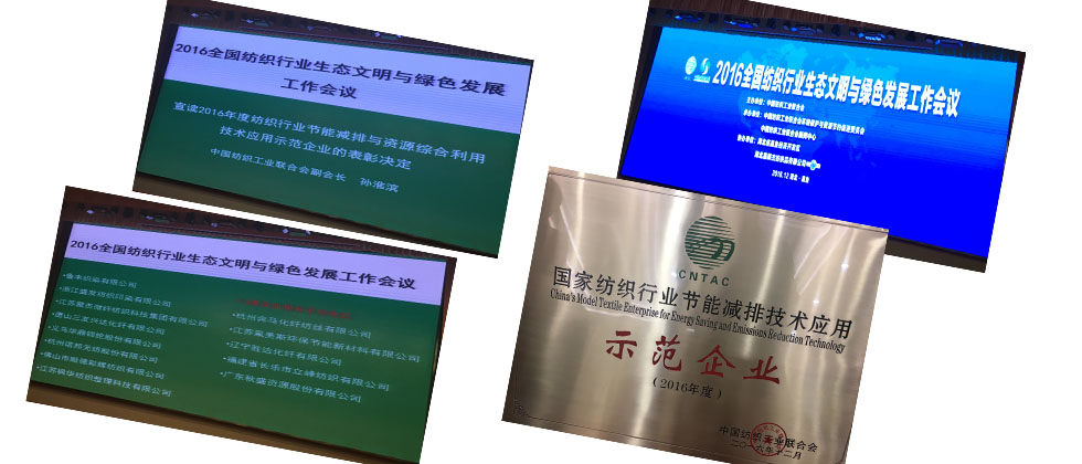 12月12日,主题为“共建生态文明、促进绿色发展”2016年全国纺织行业生态文明与绿色发展工作会议在湖北嘉鱼县隆重召开。大会授予诺邦股份“2016年度国家纺织行业节能减排技术应用示范企业”荣誉称号,公司行政管理部主任朱慧泉代表公司领奖并作了工作报告。