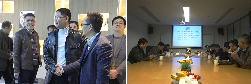 随后,一行人前往公司四号会议室参加了第六次理事会议。会上,秘书长胡锡巡对2016年工作情况进行了总结汇报。在2016年,协会贯穿“领跑金职涯”主题,积极融入人才办、人力社保局、未来科技园等平台,开展了一系列活动。同时,会议对2016年年会事宜进行确定,并针对2017年协会的工作计划进行商讨,最后由张会长作总结发言。